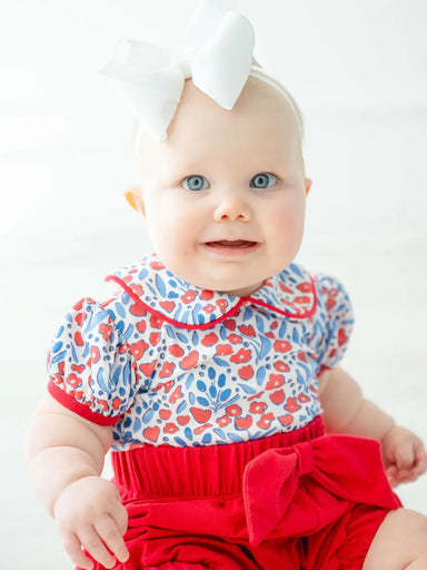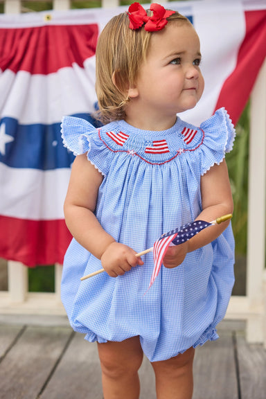 Elevate your baby girl's playwear with Little English's Applique Tilly Bubble - Flag. This angel sleeve knit bubble features flutter sleeves and a ...