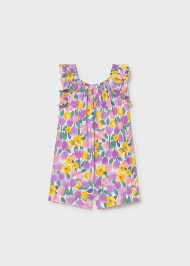 Floral Print Sleeveless Short Snap Romper