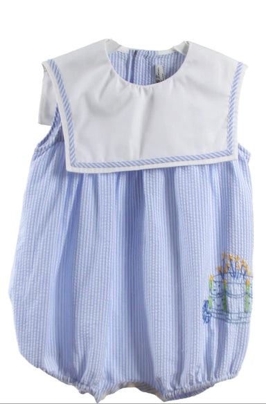Your Birthday Girl will be ready for festivities with this adorable corduroy Bishop Dress!! It has smocked birthday presents and hats on the front!