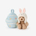 This plush bear brings a delightful surprise—dressed in a removable white bear hat, it zips up snugly into a soft Easter egg. A charming companion for little hands, perfect for springtime play and Easter baskets.