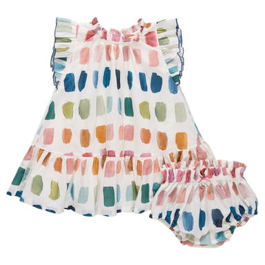 A playful statement style made for spring celebrations! The Baby Girls Harper Dress Set features a hand painted paint swatches print on airy 100% c...