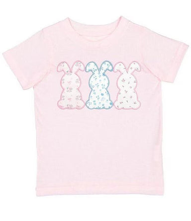 Hop into springtime style with this adorable pink t-shirt featuring charming floral bunny patches! Perfect for little girls who love all things cut...