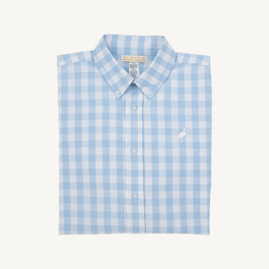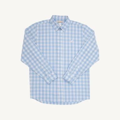 Your dapper little gent is sure to look perfectly put together in TBBC's Dean's List Dress Shirt featuring Beale Street Blue Gingham with Worth Ave...