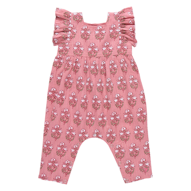 Blushing with charm, our Baby Girls Elsie Jumper in Pink Strawflower Block Print is a springtime delight. Ruffled sleeves and gentle gathers make i...