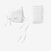 - Set includes swiss dot woven cotton covered New Testament Bible and cotton baby bonnet with scalloped edge and ribbon tie closure