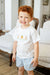 The Smocked Easter Bunny T-Shirt and Shorts Set is a classic, comfortable style for boys, perfect for celebrating Easter and springtime fun. This sweet set features a soft 100% cotton white T-shirt with a smocked chest panel with Easter bunnies and carrots, paired with micro blue gingham shorts made from a 45% Polyester / 55% Cotton blend.