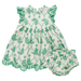 An heirloom inspired spring classic! The Baby Girls Cynthia Dress Set features green eyelet detailing throughout, scalloped embroidered hems and sleeves, a ruffle neckline, and full lining for comfort. The matching diaper cover is finished with a white satin bow for a polished finishing touch. Crafted in 100% cotton, this timeless set is perfect for spring celebrations.