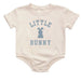 Your little one will be the cutest cottontail in town wearing this charming natural romper! Featuring an adorable steel blue bunny across the front, this short-sleeve style is made for giggles and playtime. The soft, neutral fabric keeps things comfy while the cheerful bunny graphic brings personality to every outfit. Whether it's Easter egg hunts, family photos, or just being absolutely precious, this romper delivers style and comfort in one hoppy package!