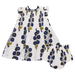 Blooming in shades of blue, our Baby Girls Stevie Dress Set in Navy Buttercup Floral is pure vintage charm. Delicate smocking, flutter sleeves, and a matching diaper cover make it perfect for little twirls. Match back with the Girls Stevie Dress and the Women’s Pintuck Indira Top in Navy Buttercup Floral Block Print for a picture-perfect trio.