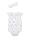 White Floral Bouquet Print Smocked Bubble & Headband