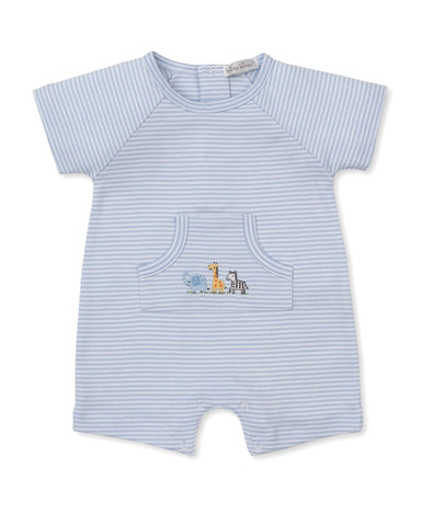 Little Bunny Steel Blue Easter Short Sleeve Romper - Natural