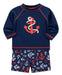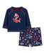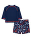 Coast through a season of fun excursions with Little Me's boys' anchor long-sleeve rashguard and coordinating swim trunks crafted from quick-drying UPF 50+ fabric!