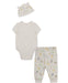 He'll be king of the jungle gym in this baby boys' cotton bodysuit pant set. Pair the short-sleeve bodysuit with the coordinating slip-on pants and matching hat to complete the look!