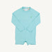 TBBC's Price Pool Romper in Edisto Egg Blue with Grace Bay Green Stork delivers UPF 35+ sun protection in a convenient one-piece design. Perfect for active little ones who love the water, this romper is a practical swimwear solution that keeps him protected and ready for non-stop water fun