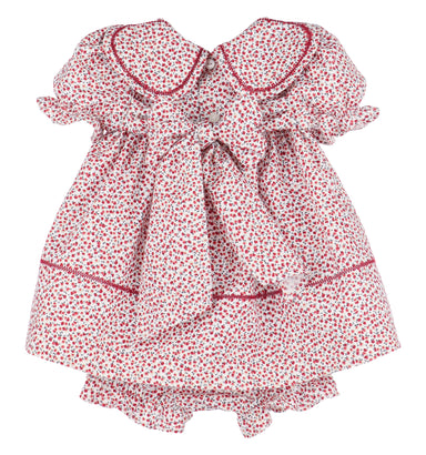 This playful set features a crisp white long sleeve tee adorned with a delightful pink floral collar, perfectly matched with cute floral bloomers w...