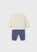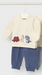 This adorable baby boy set features a long-sleeved sweatshirt with embroidered dinosaurs that bring playful charm to nap time and playtime. The round neckline and side press studs make dressing easy and comfy, with shoulder press studs on sizes 6-9 for a snug fit.