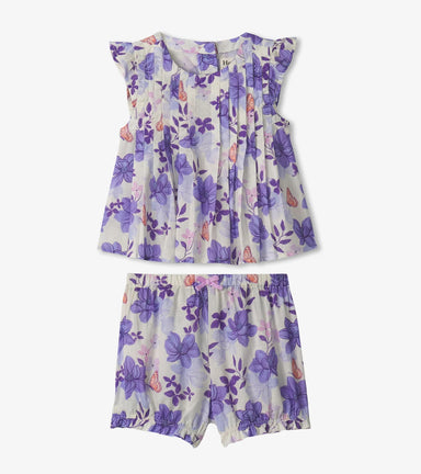 This Pink English Garden Floral Top & Bloomer Set combines a soft pink top featuring a delicate English garden floral print on the collar with ...