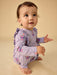 Designed with both charm and practicality in mind, this romper is a delightful choice for gift givers and expecting parents. The soft 100% cotton jersey fabric ensures comfort for baby's sensitive skin, while the ruffle shoulder detail adds a touch of sweetness. The snap closure at the center back neck and inseam snaps make dressing and diaper changes quick and easy, catering to the needs of busy caregivers. This romper combines style and function, making it a thoughtful addition to any baby's wardrobe.