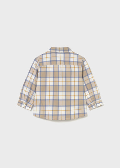 Keep your little one cozy and cute in this tan and blue plaid button-down shirt. Crafted from soft, warm viyella fabric, it features a classic coll...