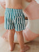Cabana Stripe Swim Shorts - Boys' Swim Trunks featuring timeless cabana stripes and pink accents. Includes UPF sun protection, a boxer-style liner, and an elastic waist with functional drawstring.