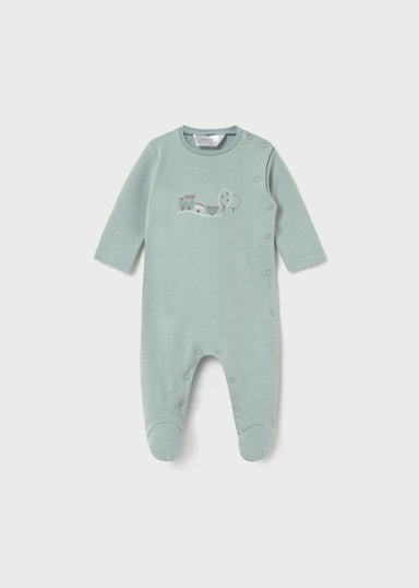 This sage long-sleeved footie is perfect for your little adventurer, featuring a charming embroidered train that adds a playful touch. The round ne...