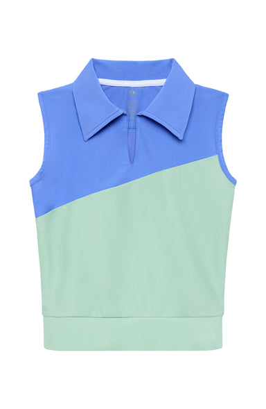 Perfect for active little ones, this sleeveless athletic tank features a crisp collar and a fun color-block design in blue and mint green. The ligh...