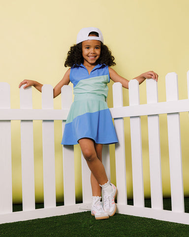 Perfect for active play, this half court skort combines style with comfort for young athletes. The vibrant blue and mint green colorway keeps thing...