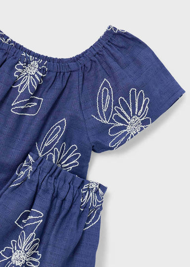 Twirl into springtime style with this charming navy linen set! Featuring a coordinated shirt and shorts combo adorned with delicate white embroider...
