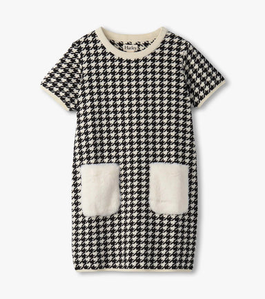 The Girls Houndstooth Sweater Dress with Faux Fur Pockets brings timeless style with a playful twist, crafted from 100% cotton yarn for cozy comfor...
