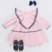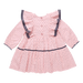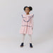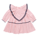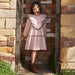 Vintage Vibes! Pink Chicken's long sleeve Girls Raphaela Dress seamlessly moves from school days to ice cream socials. A velvet-taped, pointed ruffle bib detail flutters at the front and lends a sense of nostalgia and the fully lined two-tiered skirt encourages twirling until twlight. A glitter button closure at the back add subtle sparkle.
