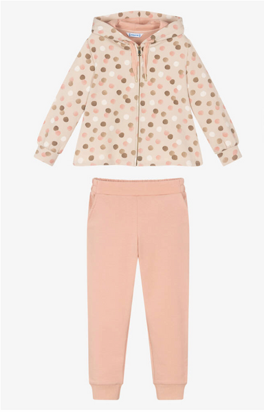 This two-piece girls' set features a long-sleeved cream tee with a round neckline, decorative embroidery, and a graphic print, paired with rust-col...