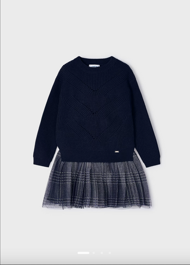 Twirl into a world of charm with the Bi-Material Dress With Muslin & Mesh Skirt Purple Gray! Crafted from organic cotton with a soft jersey bod...