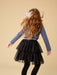 A fresh spin on a classic favorite, this tiered tulle skirt is all about movement and fun. With its layered mesh overlay and striped elastic waistband, it brings just the right mix of whimsy and sporty flair. The soft jersey lining ensures comfort while the voluminous silhouette inspires endless twirls. Perfect for dressing up or down, it pairs effortlessly with graphic tees or dressy tops alike