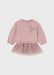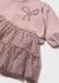 This elegant pink set includes a sweatshirt featuring pleated sleeves at the shoulders and a delicate tulle bow on the top left, perfectly matching the soft, layered tulle skirt. It offers a sophisticated yet playful outfit ideal for your baby girl’s special moments or everyday wear. The thoughtful design details ensure a harmonious and charming look.