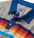 Get them ready for Throwback Thursday with this polo shirt! Made from a soft cotton-polyester blend, this short-sleeve polo features a grey marl base accented by bold, 70’s-inspired rainbow stripes stretching across the chest and sleeves. The contrasting blue collar and three-button placket add a sporty touch, while side vents offer ease and comfort in every move. It’s a fun, feel-good classic.