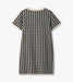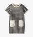 The Girls Houndstooth Sweater Dress with Faux Fur Pockets brings timeless style with a playful twist, crafted from 100% cotton yarn for cozy comfort. This short-sleeve sweater dress features a classic black-and-white houndstooth print in a straight, shift-like silhouette, accented by ribbed cream trim at the neckline, armholes, and hem. Two standout ivory faux fur patch pockets on the front add both texture and charm, making this piece as fun as it is fashionable
