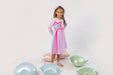 This lilac long-sleeve dress for girls features a soft tulle skirt complemented by a unique tulle star detail that gracefully drapes down onto the skirt. Has the perfect playful touch for the little girl that loves to play dress up everyday!