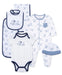 Little Me's Puppy Toile gift box set is the ultimate gift for that special little one coming into the world! Your baby boy or girl will be cute and comfortable in this blue puppy all over set. Gift Set Includes: Printed Gift Box, Footie & Hat, Bodysuit, bib, Burp and Blanket.