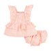 Dress your little one in pure charm with this delightful Pink Smocked Check Pinafore Set! This adorable 2-piece ensemble features a gingham pinafore with intricate smocking across the chest and flutter sleeves that dance with every movement. Paired with coordinating bloomers, it's the perfect outfit for special occasions or everyday sweetness. The soft cotton-rayon blend keeps your baby cozy and comfortable all day long. A timeless piece that's sure to turn heads!