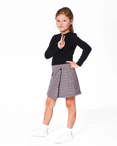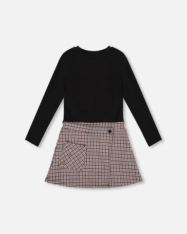 The Bi-Material Dress Black and Houndstooth is a chic statement piece with a clever layered look. This long sleeve dress pairs a brushed rib black ...