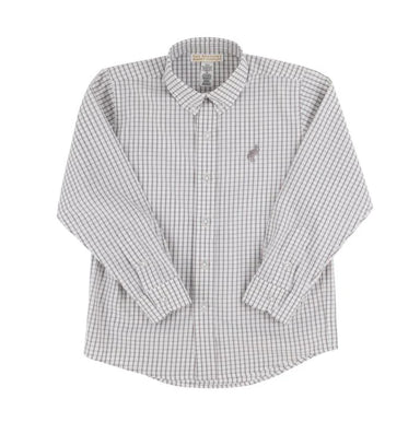 Your dapper little gent is sure to look perfectly put together in our Dean's List Dress Shirt in Grantley Gray Windowpane with Grantley Gray Stork....