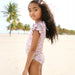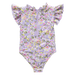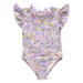 Softly romantic with a vintage feel, the Jennifer Suit in Allover Sketched Floral is full of thoughtful detail. Ruffle sleeves and a ruffle collar frame the silhouette beautifully, while lilac pearl stitching and a matching zipper pull add the sweetest finishing touch. A standout piece for pool parties and beach vacations alike.