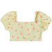 Bright, sunny, and full of charm, this yellow stripe tankini is made for happy summer days. The soft textured fabric features playful pink bows scattered across subtle stripes, while puff sleeves add a fun, standout touch. The matching headband pulls the whole look together for picture-ready pool moments and beach adventures alike. Sweet details. Sunny energy.
