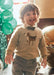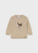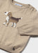 This camel-colored sweater features an adorable beagle puppy design on the front, perfectly suited for a baby boy. It includes convenient buttons at the neck, making dressing and undressing effortless