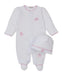 Your baby will look darling in this sheep themed two-piece set. Made from the softest Pima cotton, Kissy Kissy's cozy footie and hat set is the ultimate indulgence.