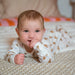 • Magnetic closures: magnets line the seam from the neck to upper thigh for sizes up to 0-3m & from neck to crotch for sizes 3-6m and up.