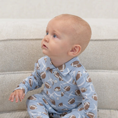 Introducing the Football Polo Romper—where style meets comfort for the little guy on the go! This fresh addition features long sleeves and legs for...