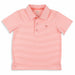 This boys classic, salmon and white stripe, short sleeve, polo shirt by Shrimp and Grits Kids is perfect for any spring or summer adventure, especially that beach vacation. Perfect for the warmer weather.