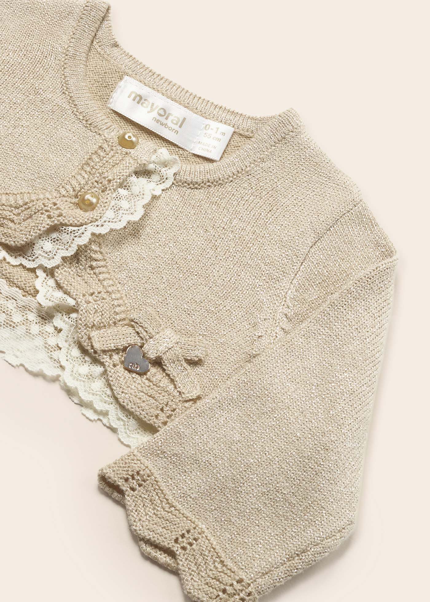 Champagne Knit Cardigan w Lace Trim