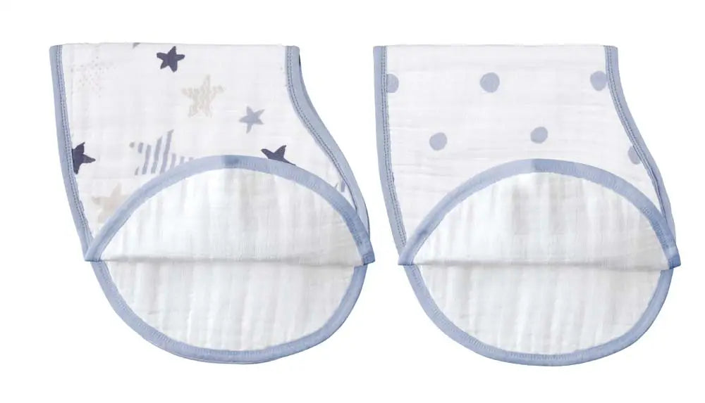 • Includes 2 pre-washed 22”x 11” 100% organic cotton muslin baby burpy bibs